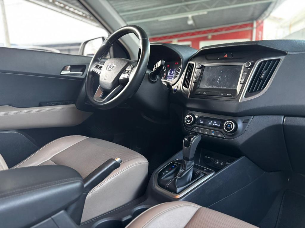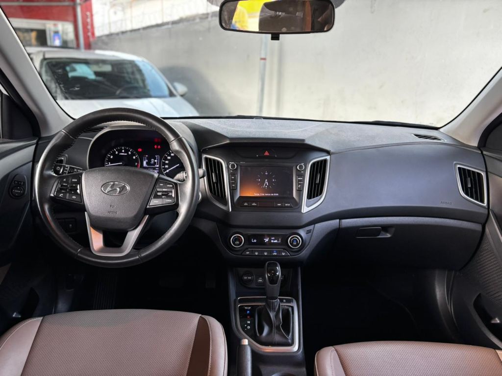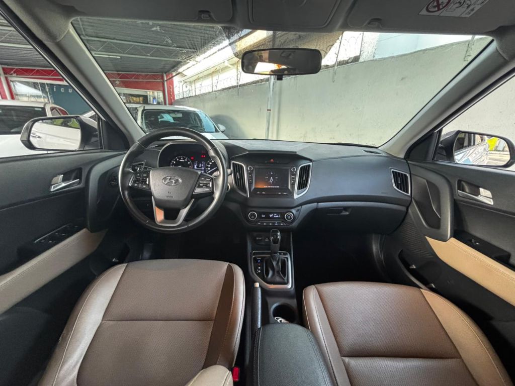 O Hyundai Creta se destaca pela posição de dirigir elevada, excelente visibilidade e amplo espaço interno, proporcionando conforto para motorista e passageiros. O interior é funcional, com boa ergonomia, acabamento bem resolvido e ótimo aproveitamento do espaço, ideal para a rotina diária e viagens.